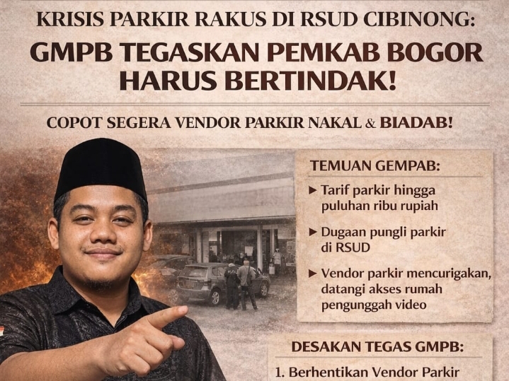 Bogor.mediasaber.com. Gerakan Mahasiswa dan Pemuda Bogor (GMPB) melayangkan protes keras terkait amburadulnya sistem pengelolaan parkir di RSUD Padjajaran (RSUD Cibinong). Mereka mendesak Pemerintah Kabupaten (Pemkab) Bogor segera mengambil langkah ekstrem dengan memutus kontrak seluruh vendor pengelola parkir pihak ketiga di seluruh RSUD Kabupaten Bogor.